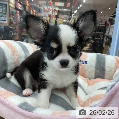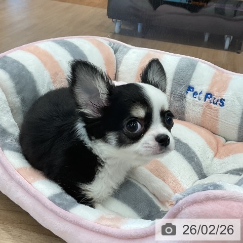 チワワ(ロング)の子犬詳細情報愛知県/2025年12月24日生まれ/男の子/ブラックタンホワイトの子犬