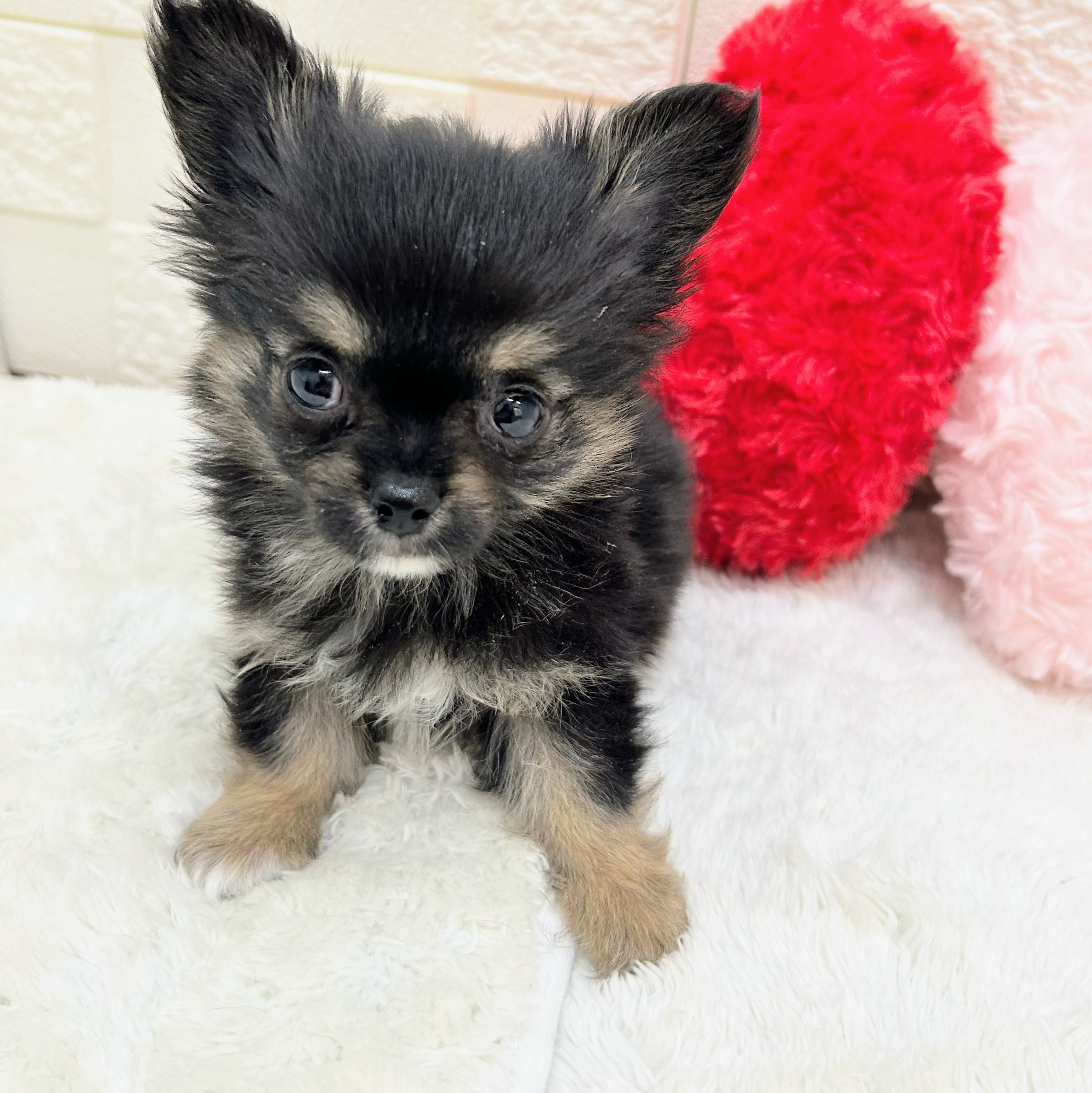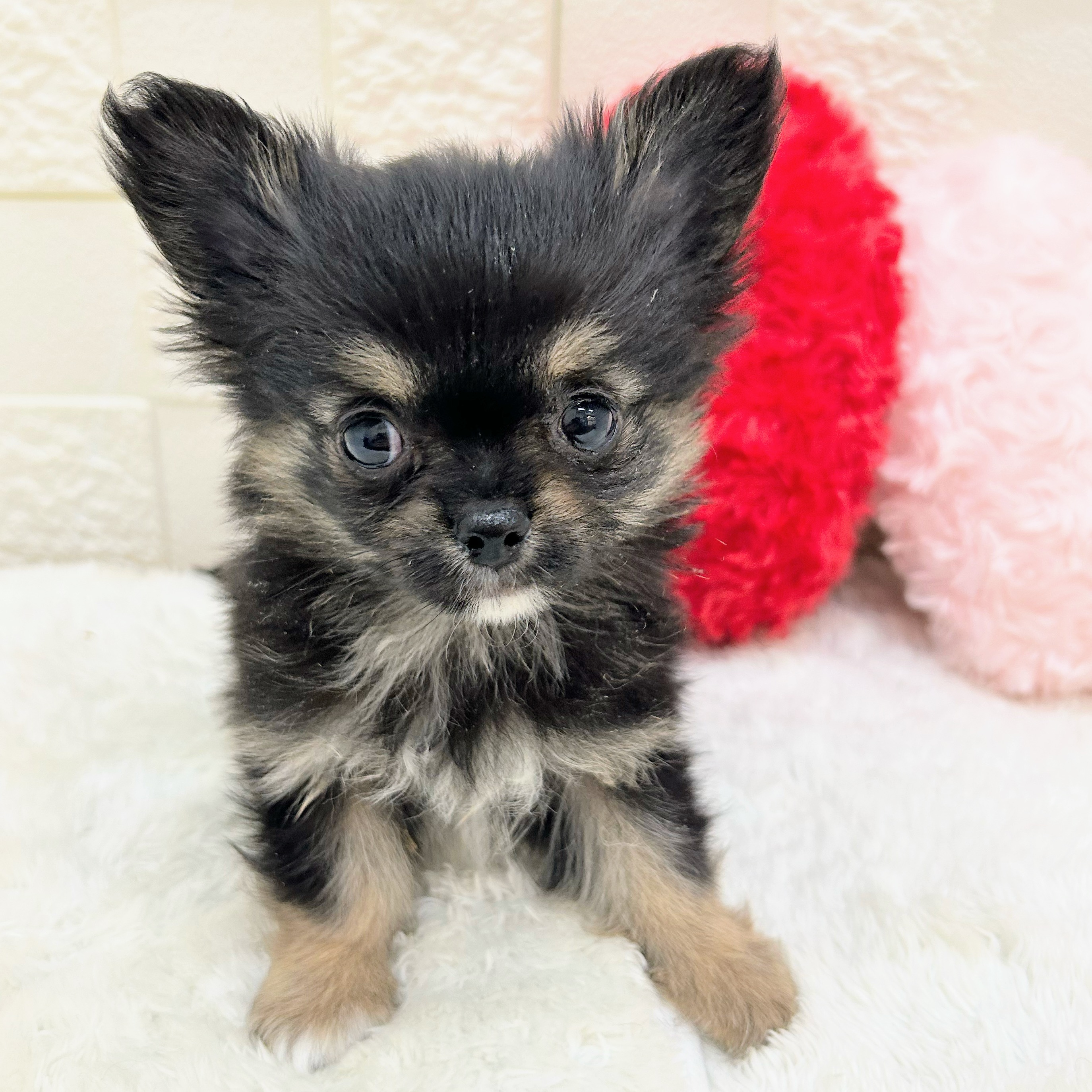 チワワ(ロング)の子犬詳細情報愛知県/2026年1月31日生まれ/男の子/ブラックタンホワイトの子犬