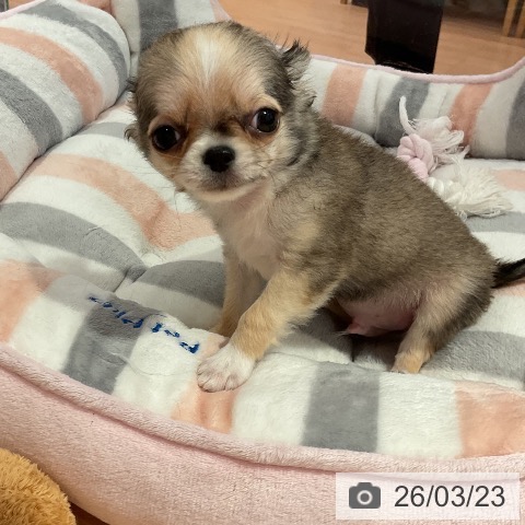 チワワ(ロング)の子犬詳細情報愛知県/2026年1月15日生まれ/男の子/フォーンホワイトの子犬