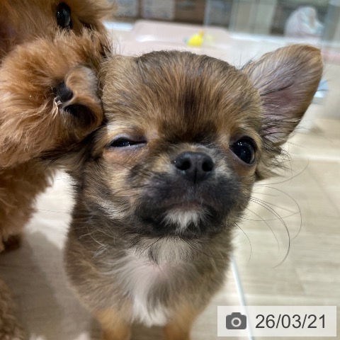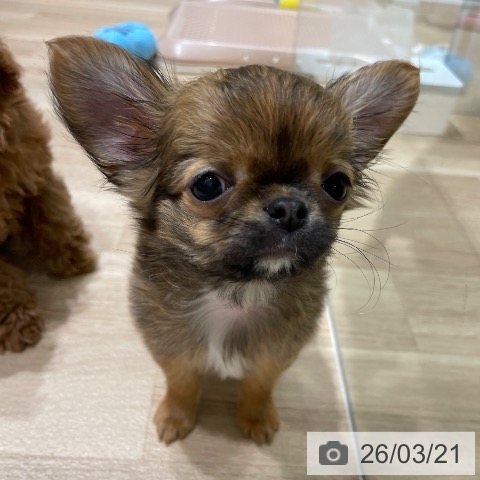 チワワ(ロング)の子犬詳細情報長野県/2025年12月15日生まれ/男の子/レッドホワイトの子犬