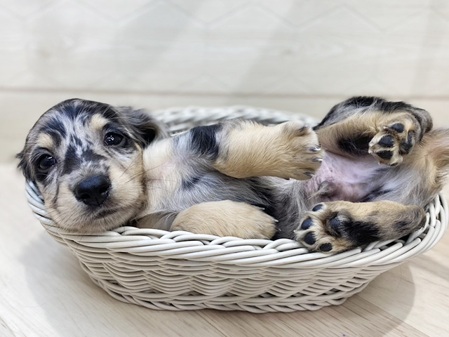 ミニチュアダックスフンド(ロング)の子犬詳細情報埼玉県/2025年8月18日生まれ/男の子/シルバーダップルの子犬