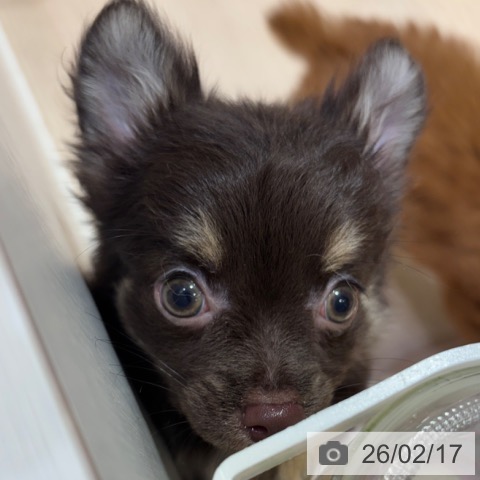 チワワ(ロング)の子犬詳細情報大阪府/2025年11月26日生まれ/男の子/チョコレートタンの子犬