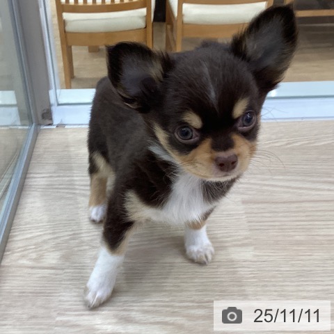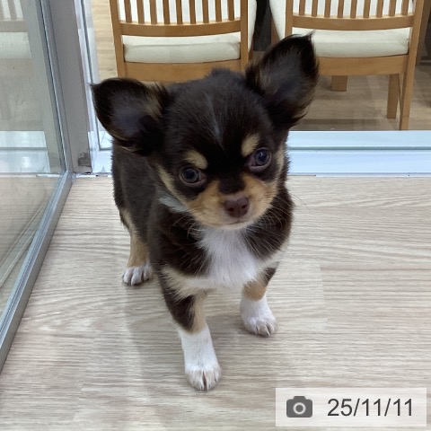 チワワ(ロング)の子犬詳細情報愛知県/2025年9月1日生まれ/女の子/チョコレートタンホワイトの子犬
