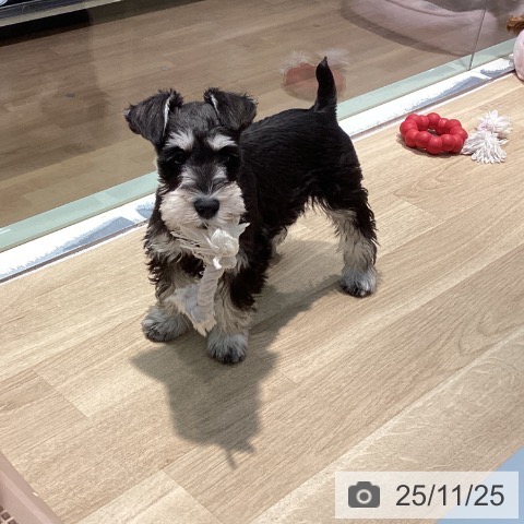 ミニチュアシュナウザーの子犬詳細情報東京都/2025年9月5日生まれ/男の子/ブラックシルバーの子犬