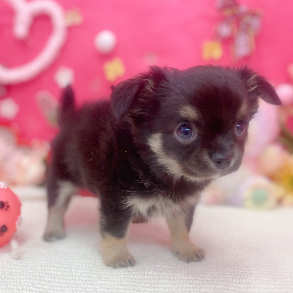 チワワ(ロング)の子犬詳細情報岐阜県/2025年11月29日生まれ/男の子/ブラックタンの子犬