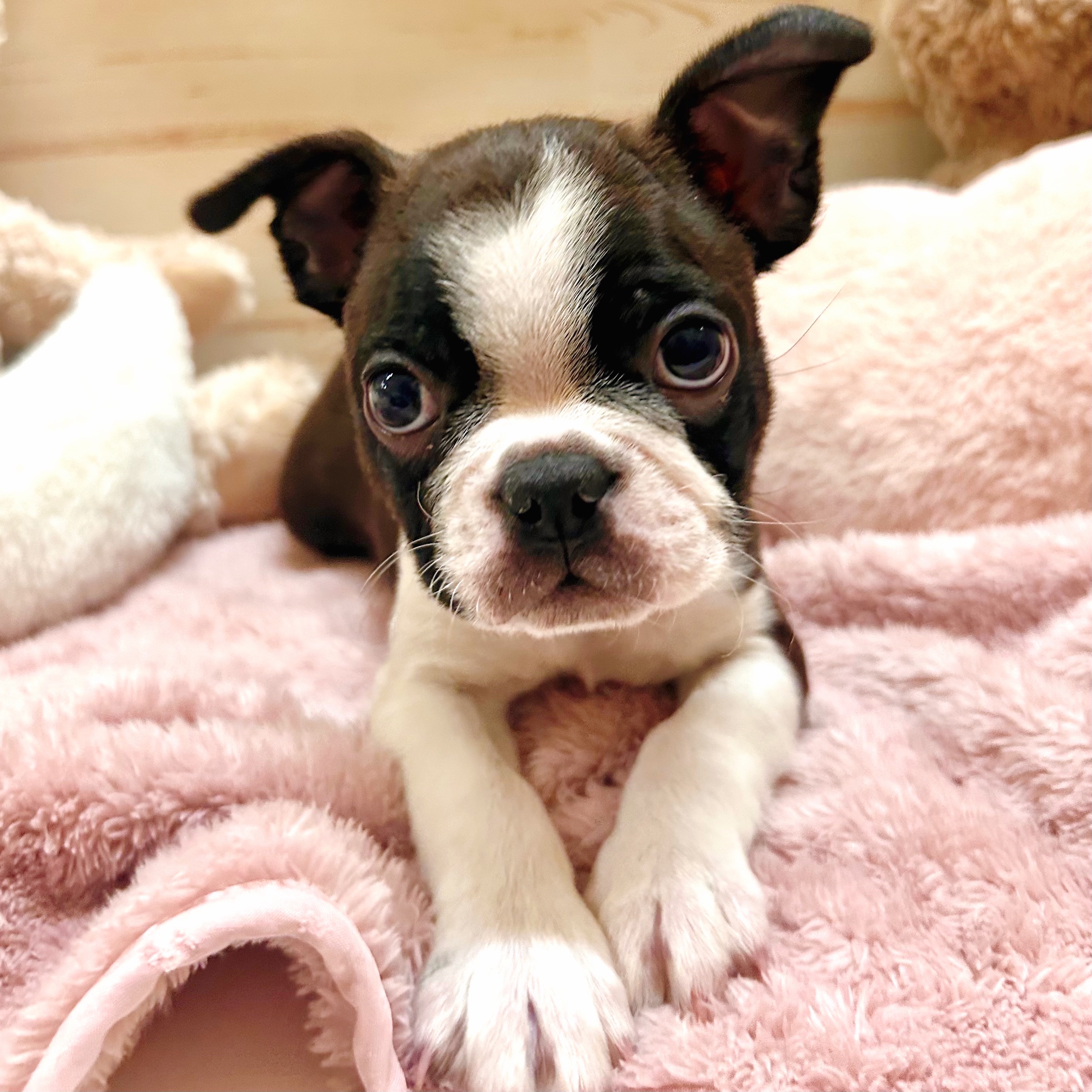 ボストンテリアの子犬詳細情報兵庫県/2025年10月3日生まれ/男の子/ボストンカラーの子犬