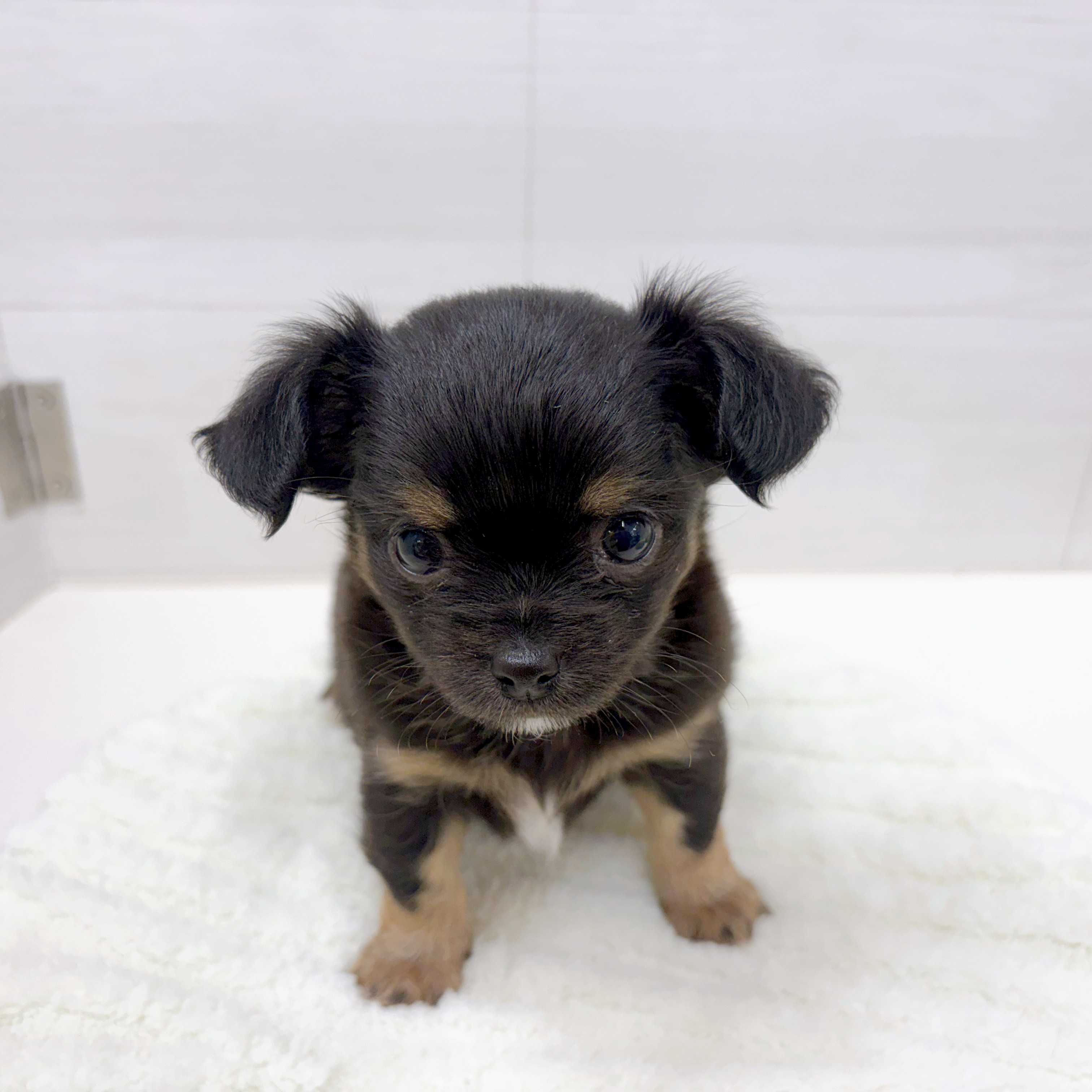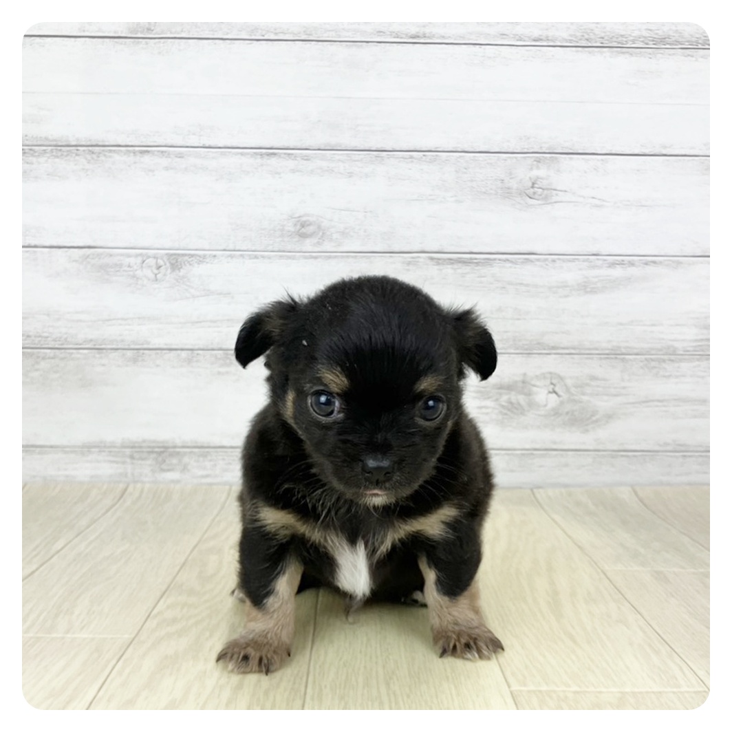 チワックス(チワワ×ダックス)の子犬詳細情報石川県/2025年12月16日生まれ/男の子/ブラックタンホワイトの子犬
