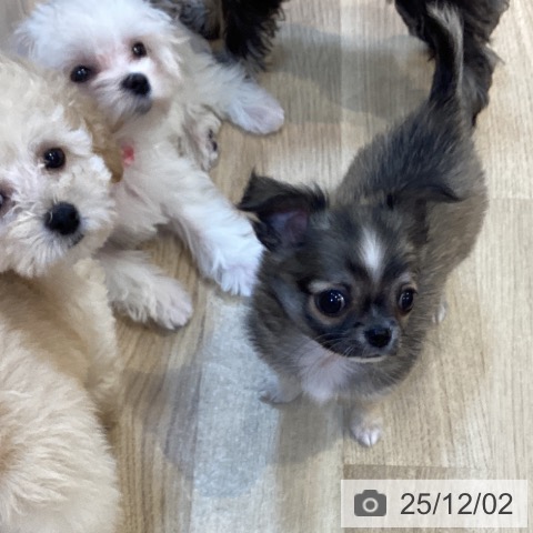 チワワ(ロング)の子犬詳細情報京都府/2025年9月30日生まれ/男の子/フォーンホワイトの子犬