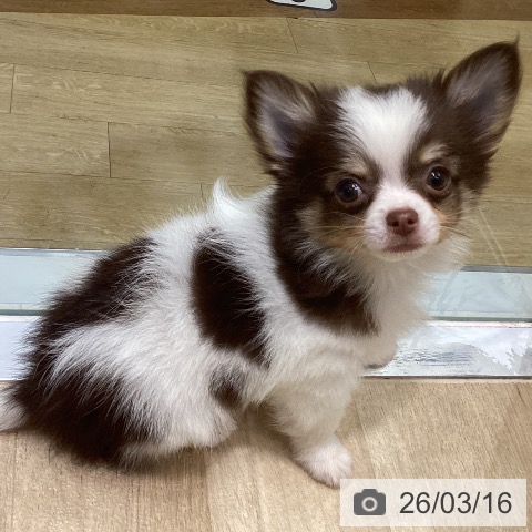 チワワ(ロング)の子犬詳細情報福岡県/2026年1月6日生まれ/男の子/ホワイトチョコレートタンの子犬