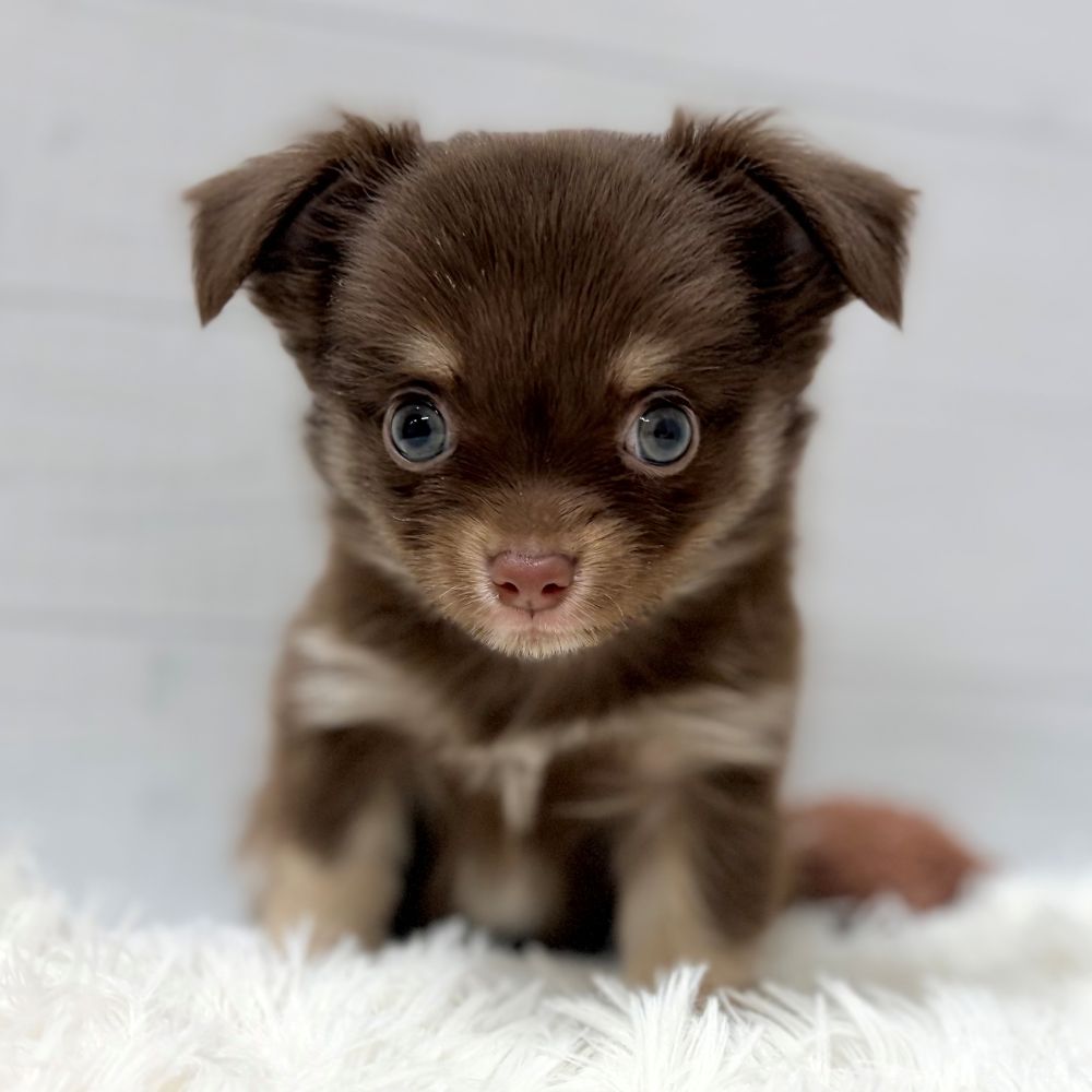 チワワ(ロング)の子犬詳細情報愛知県/2025年12月7日生まれ/男の子/チョコレートタンクリームの子犬