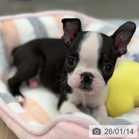 ボストンテリアの子犬詳細情報京都府/2025年11月12日生まれ/女の子/ボストンカラーの子犬