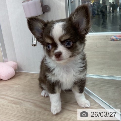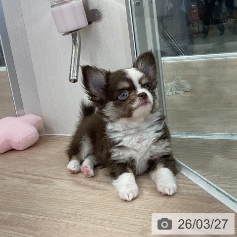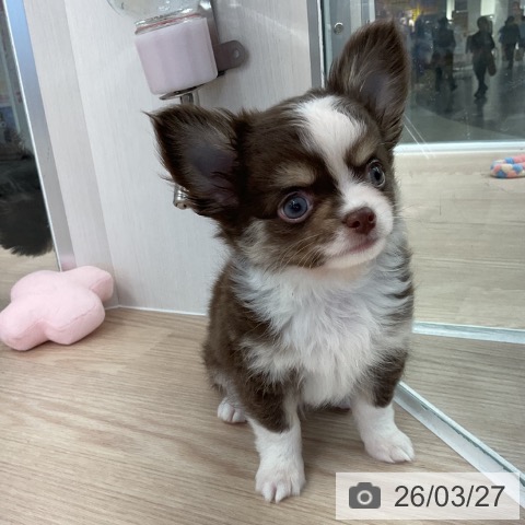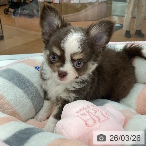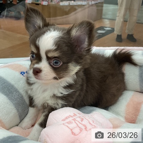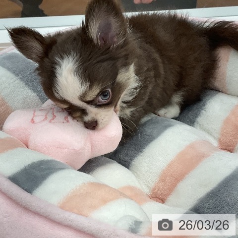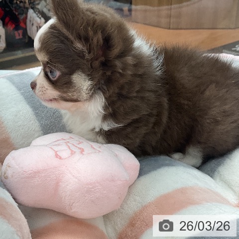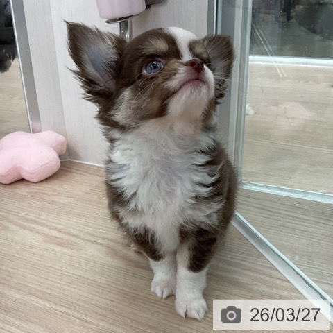 チワワ(ロング)の子犬詳細情報福井県/2026年1月20日生まれ/男の子/チョコレートタンホワイトの子犬