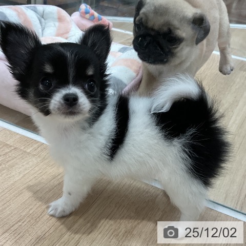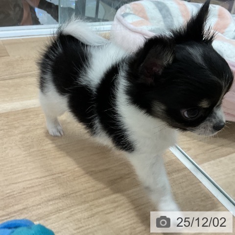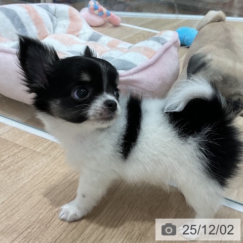 チワワ(ロング)の子犬詳細情報福岡県/2025年9月26日生まれ/女の子/ブラックタンホワイトの子犬