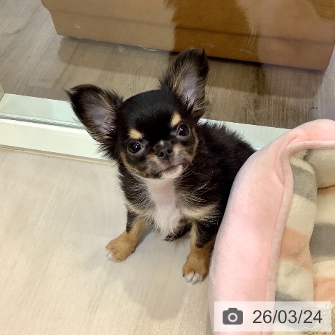 チワワ(ロング)の子犬詳細情報埼玉県/2026年1月15日生まれ/男の子/ブラックタンホワイトの子犬