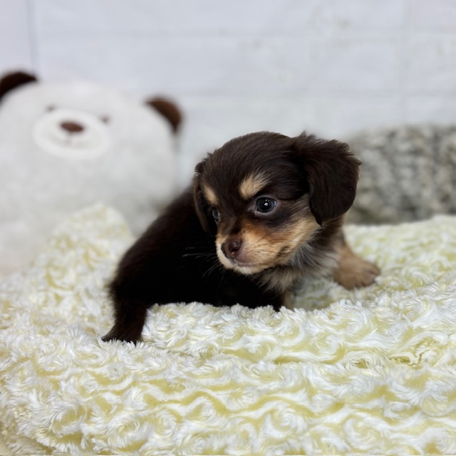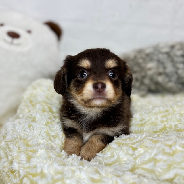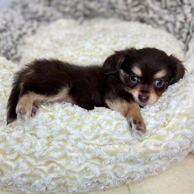 チワックス(チワワ×ダックス)の子犬詳細情報長野県/2025年8月18日生まれ/男の子/チョコレートタンの子犬