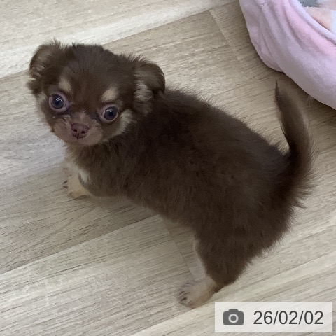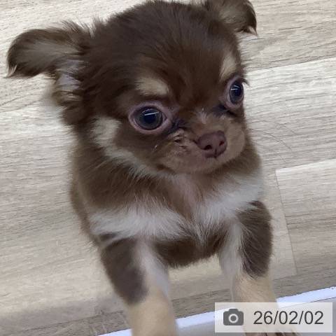 チワワ(ロング)の子犬詳細情報山梨県/2025年12月4日生まれ/男の子/チョコレートタンホワイトの子犬