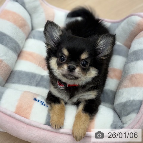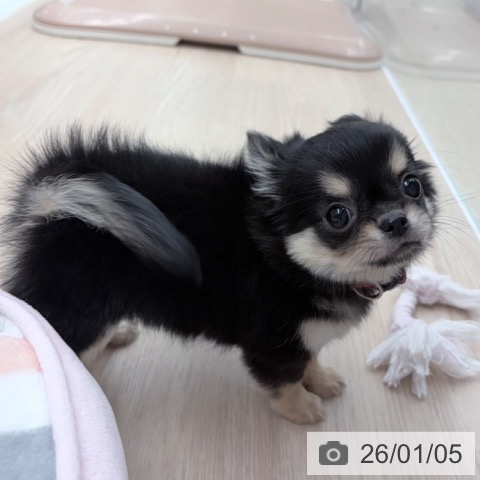 チワワ(ロング)の子犬詳細情報京都府/2025年11月1日生まれ/女の子/ブラッククリームの子犬