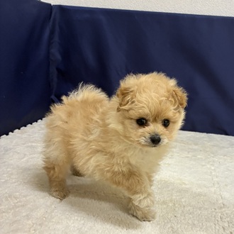 ポメプー(ポメラニアン×プードル)の子犬詳細情報愛知県/2025年12月1日生まれ/男の子/アプリコットホワイトの子犬