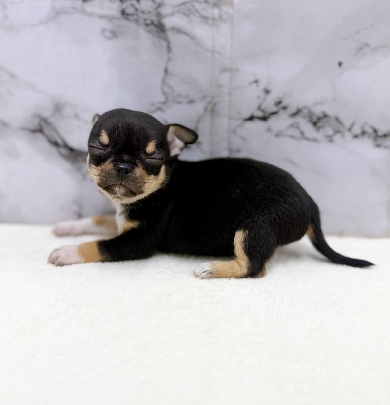 チワワ(スムース)の子犬詳細情報神奈川県/2025年12月13日生まれ/女の子/ブラックタンホワイトの子犬