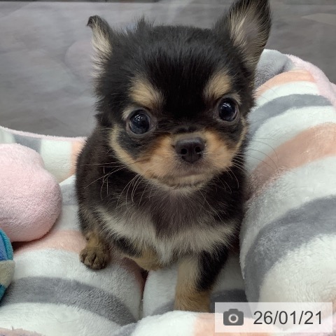 チワワ(ロング)の子犬詳細情報埼玉県/2025年11月22日生まれ/男の子/ブラックタンホワイトの子犬