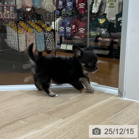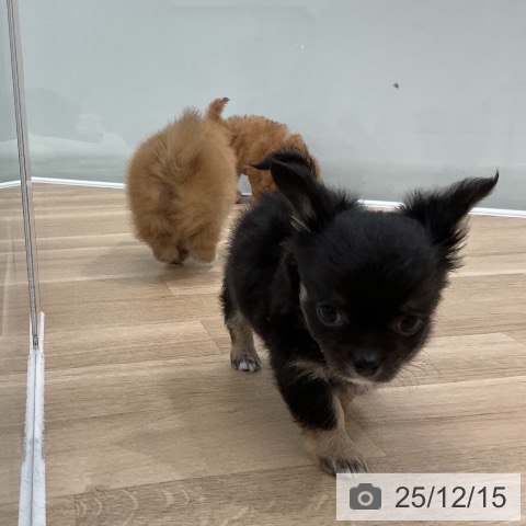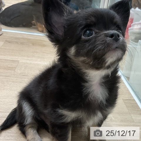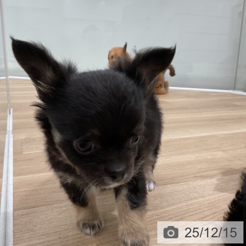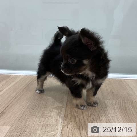 チワワ(ロング)の子犬詳細情報福岡県/2025年10月14日生まれ/男の子/ブラックタンホワイトの子犬