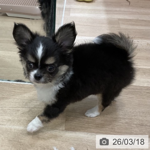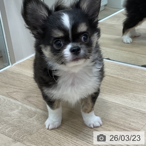 チワワ(ロング)の子犬詳細情報福岡県/2026年1月13日生まれ/男の子/ブラックタンホワイトの子犬