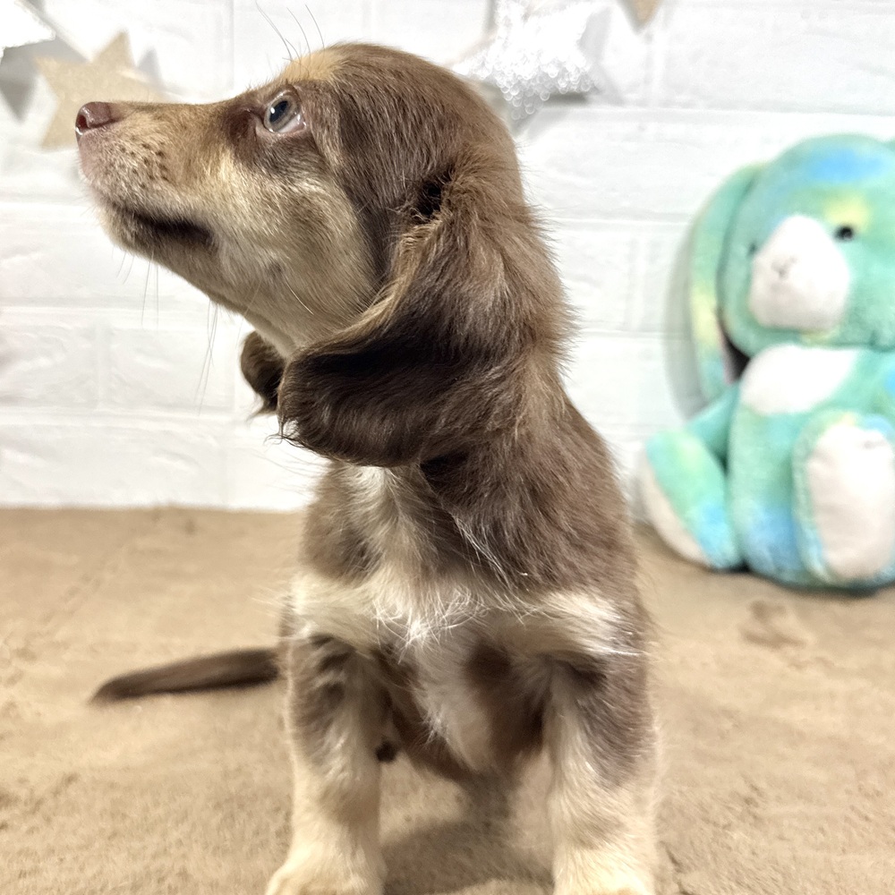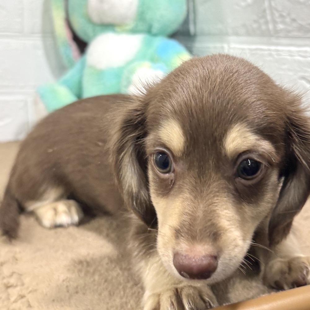 チワックス(チワワ×ダックス)の子犬詳細情報兵庫県/2025年9月3日生まれ/男の子/チョコレートクリームの子犬