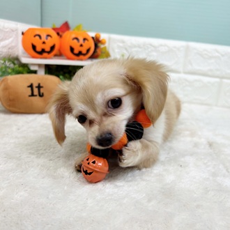 チワックス(チワワ×ダックス)の子犬詳細情報静岡県/2025年7月27日生まれ/女の子/クリームホワイトの子犬