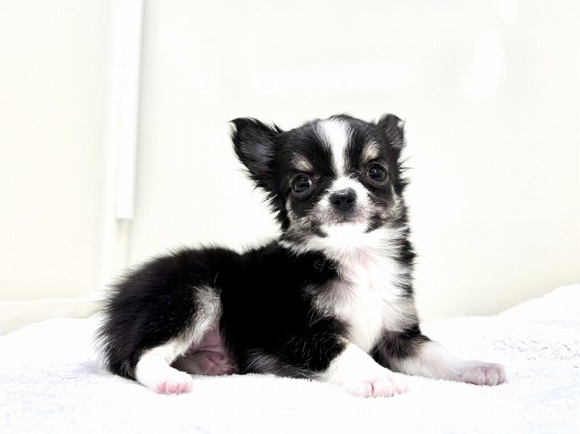 チワワ(ロング)の子犬詳細情報東京都/2025年12月14日生まれ/男の子/ブラックタンホワイトの子犬