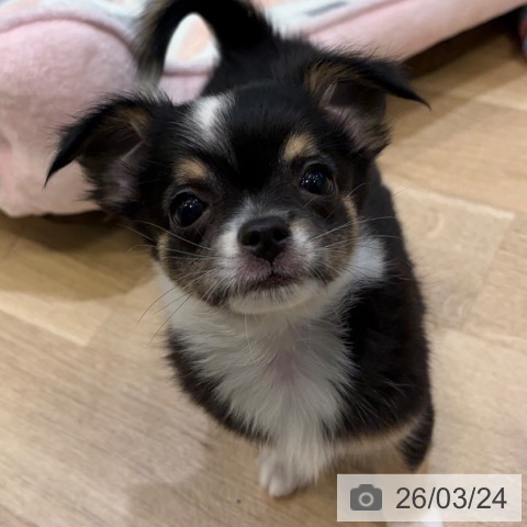 チワワ(ロング)の子犬詳細情報大阪府/2026年1月14日生まれ/男の子/ブラックタンホワイトの子犬