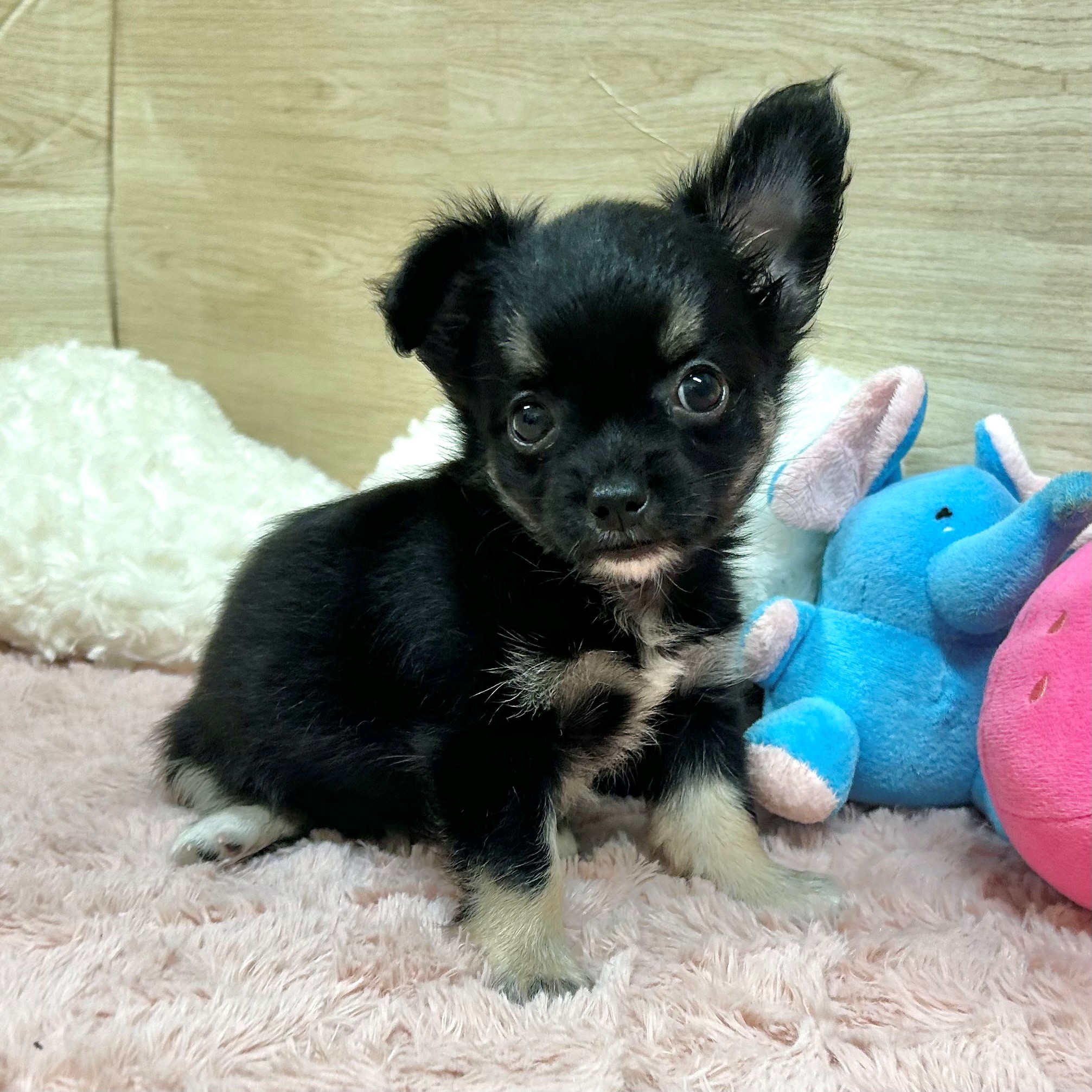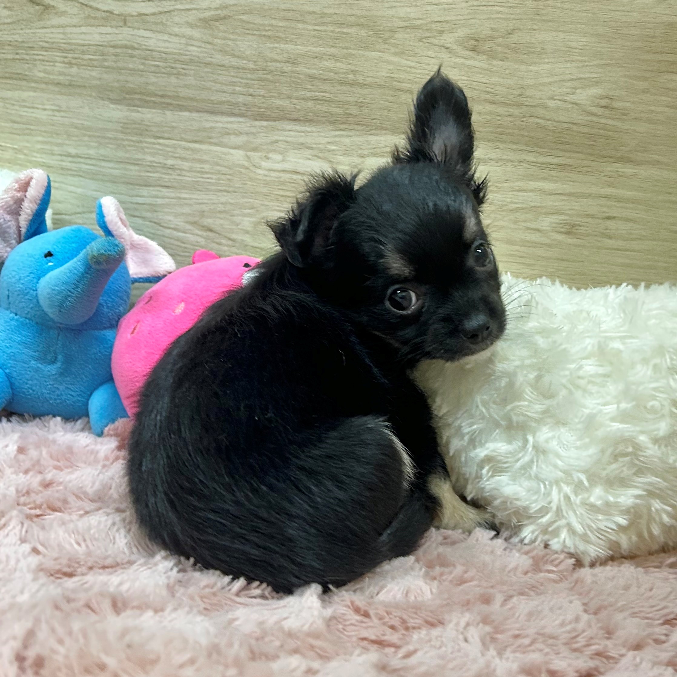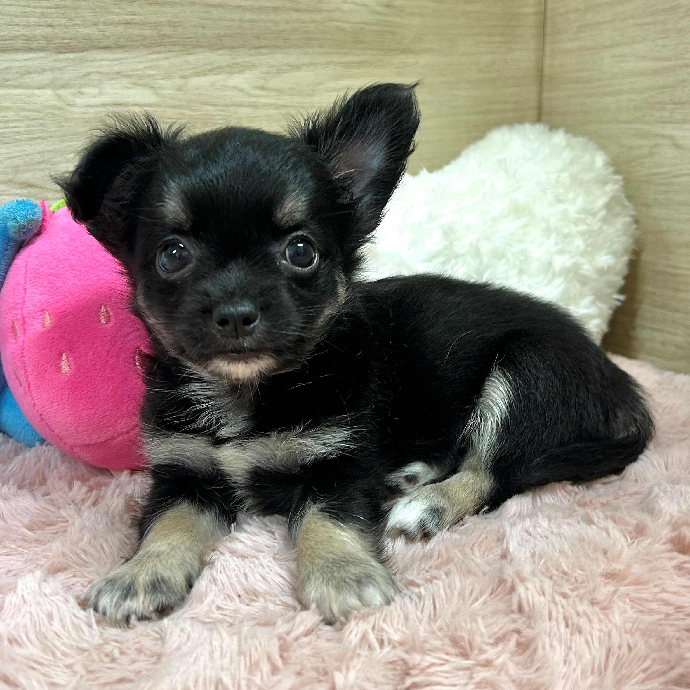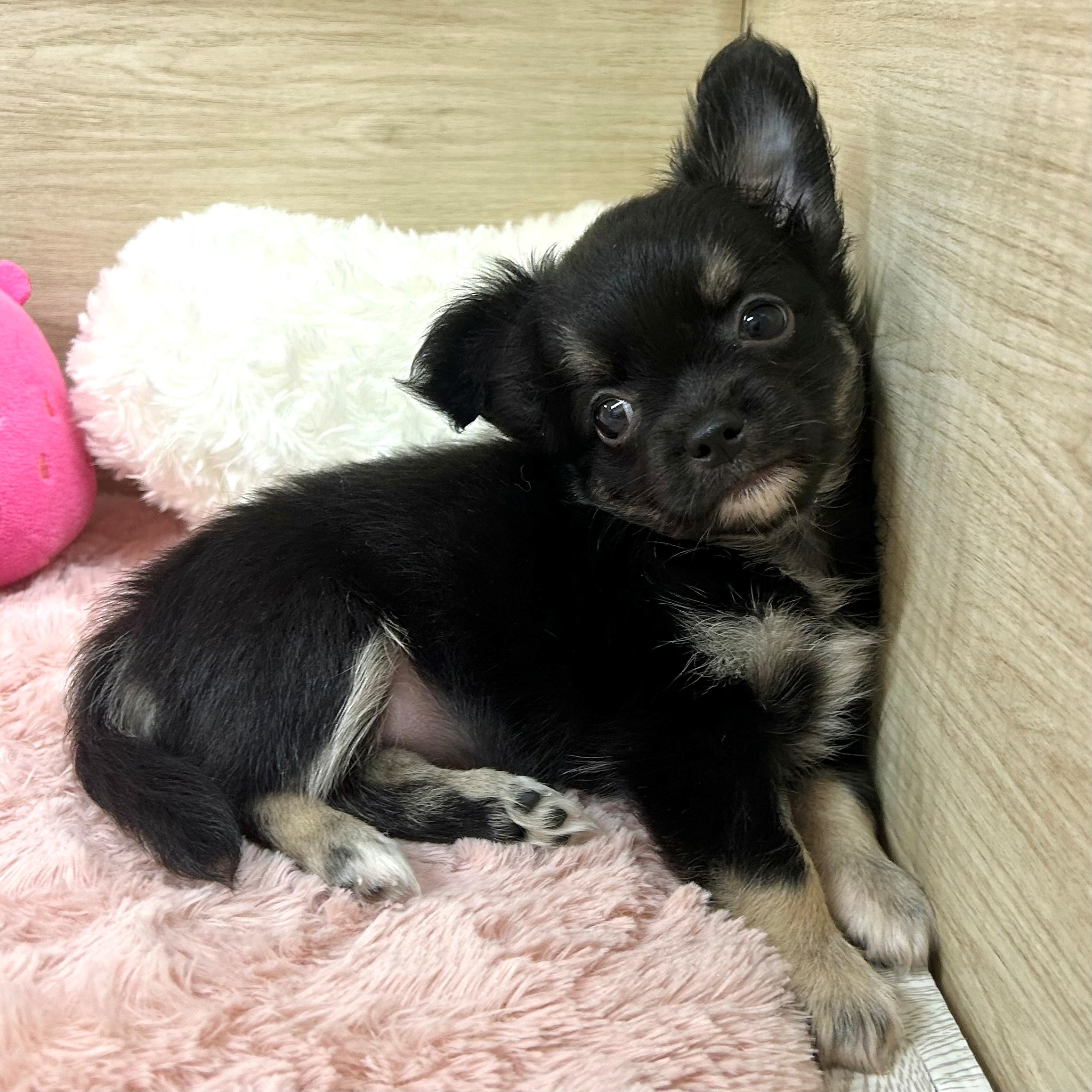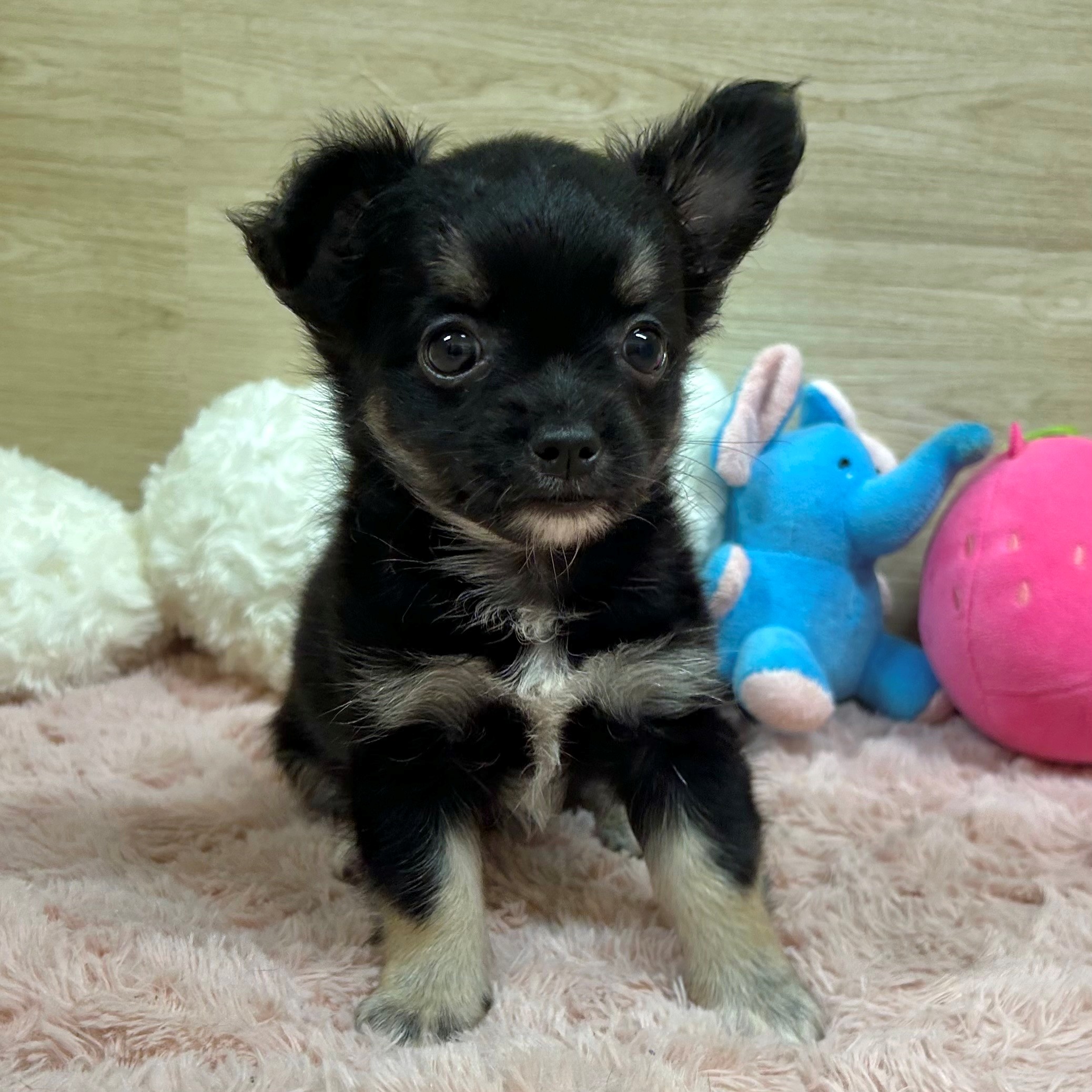 チワワ(ロング)の子犬詳細情報大阪府/2025年6月23日生まれ/女の子/ブラックタンホワイトの子犬