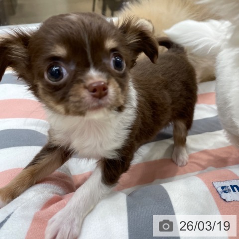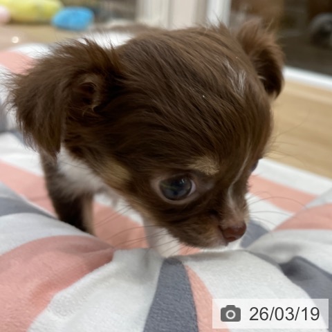 チワワ(ロング)の子犬詳細情報福岡県/2026年1月8日生まれ/女の子/チョコレートタンホワイトの子犬