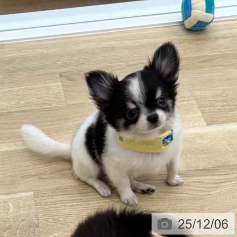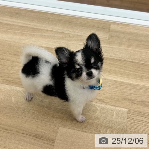 チワワ(ロング)の子犬詳細情報大阪府/2025年8月29日生まれ/男の子/ホワイトブラックタンの子犬