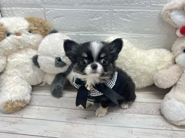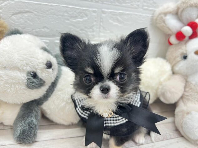 チワワ(ロング)の子犬詳細情報岡山県/2026年11月27日生まれ/男の子/ブラックタンホワイトの子犬