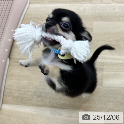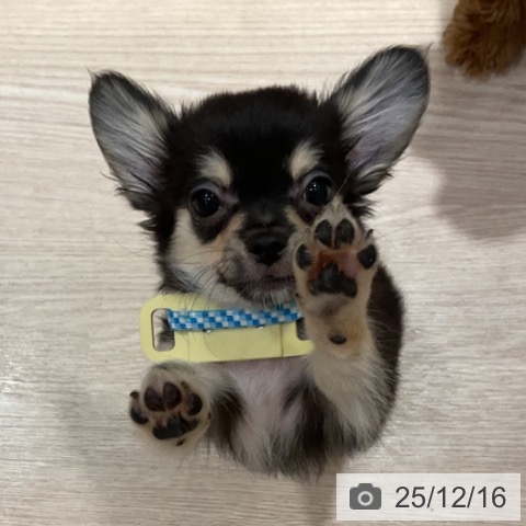 チワワ(ロング)の子犬詳細情報大阪府/2025年9月3日生まれ/男の子/ブラックタンホワイトの子犬