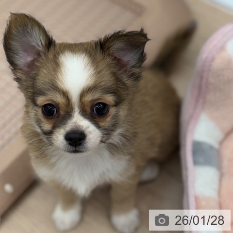 チワワ(ロング)の子犬詳細情報京都府/2025年11月26日生まれ/女の子/レッドホワイトの子犬
