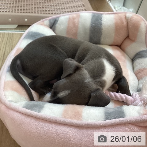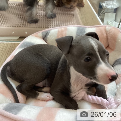 イタリアングレーハウンドの子犬詳細情報京都府/2025年10月31日生まれ/男の子/ブルーホワイトの子犬