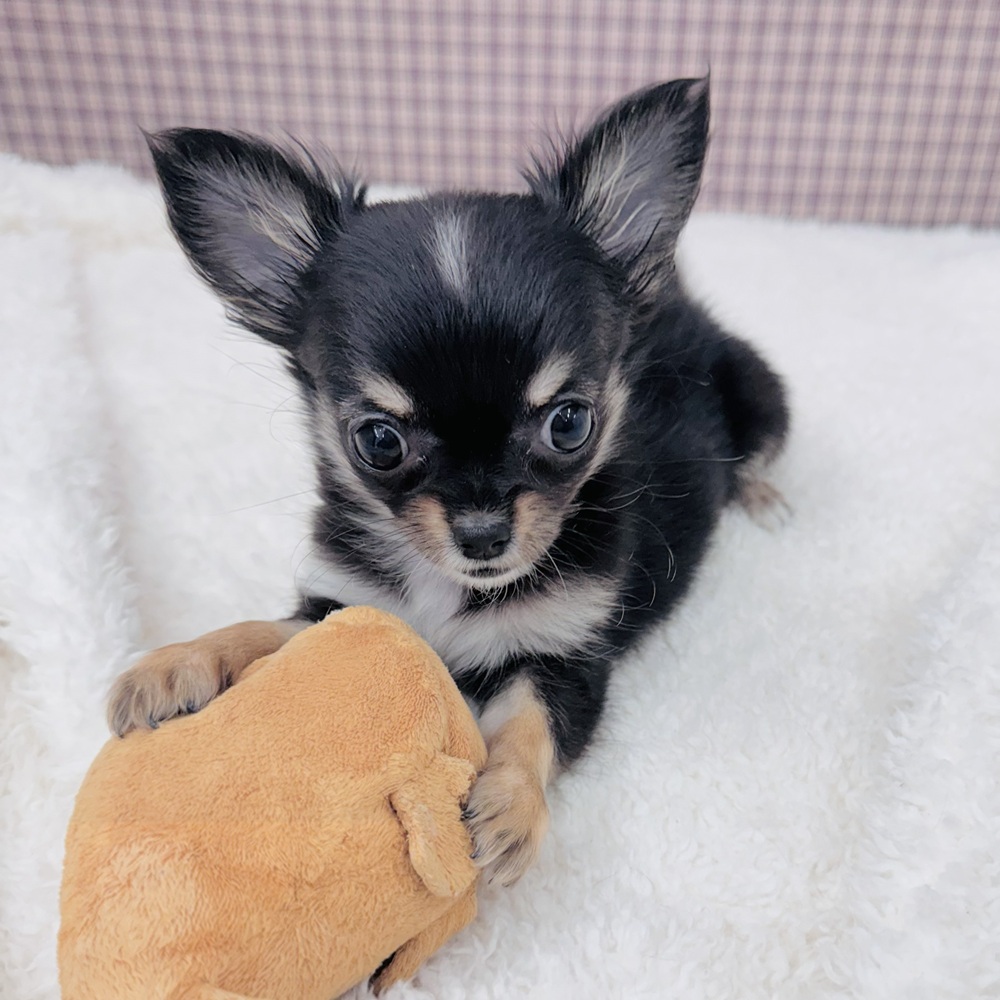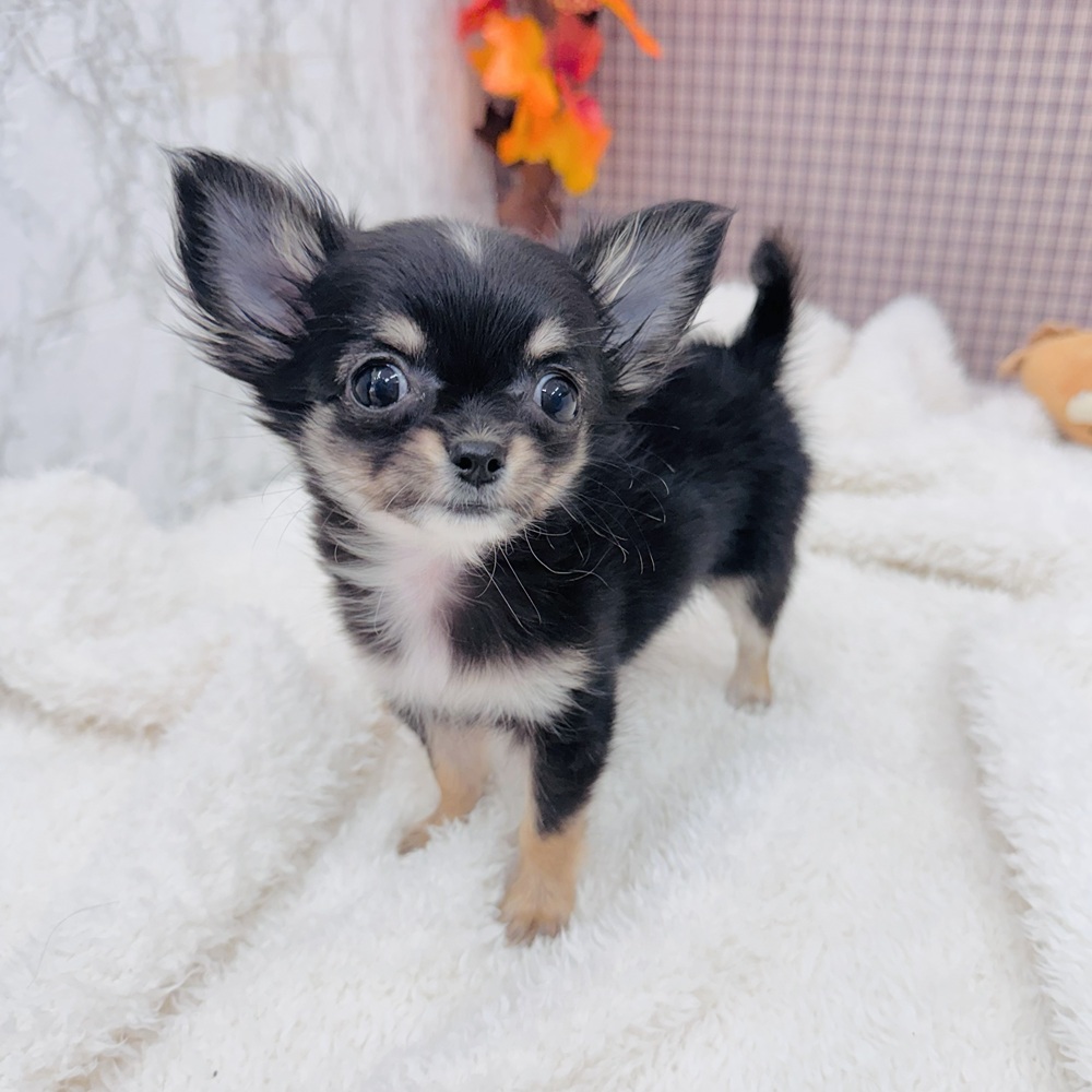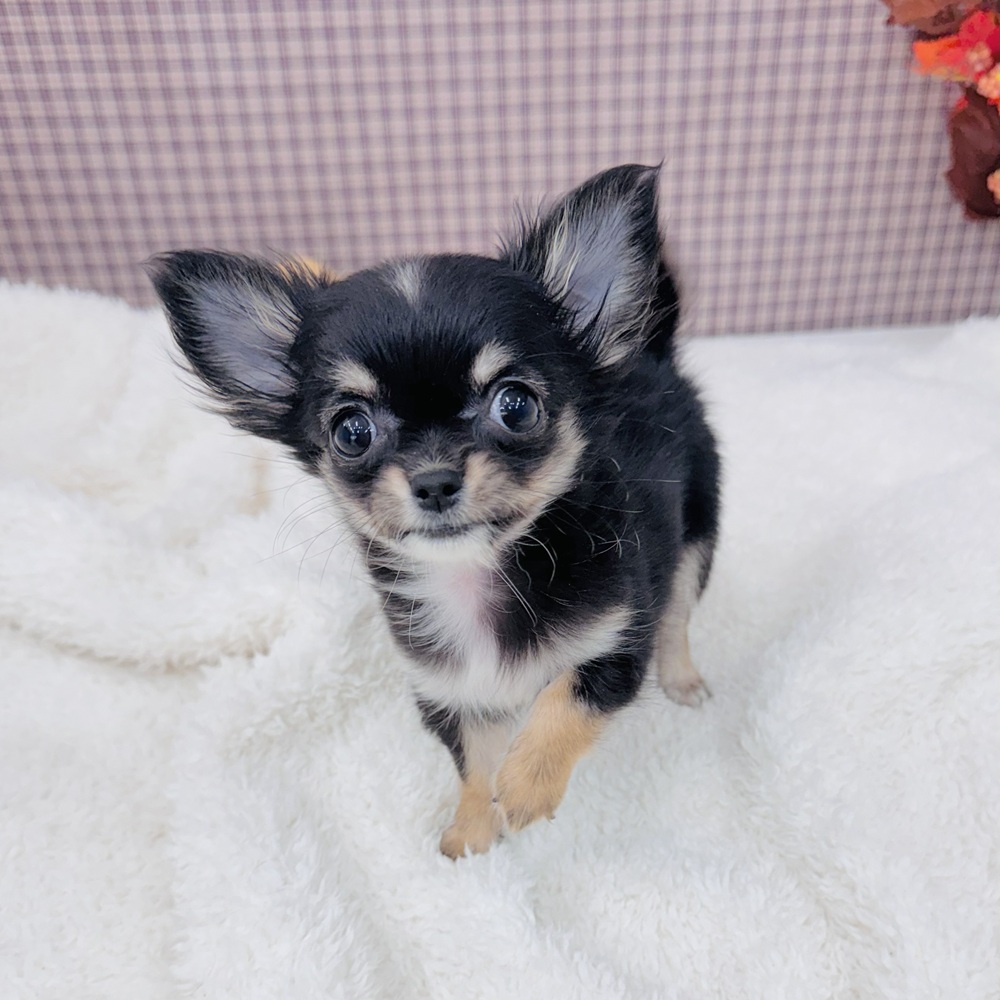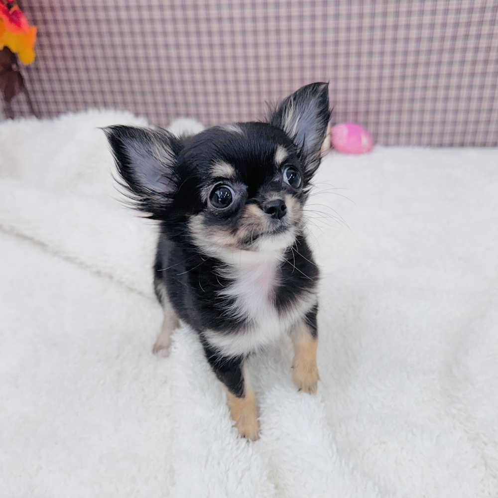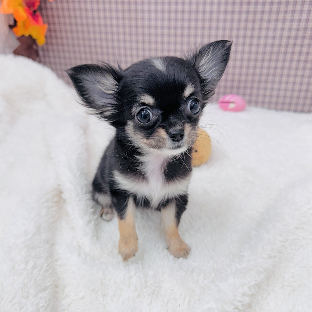 チワワ(ロング)の子犬詳細情報愛知県/2025年9月2日生まれ/女の子/ブラックタンホワイトの子犬