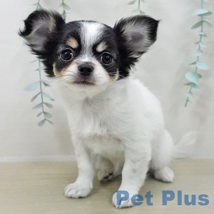チワワ(ロング)の子犬詳細情報長野県/2025年9月24日生まれ/女の子/ホワイトブラックタンの子犬