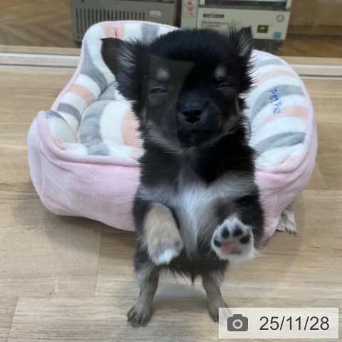 チワワ(ロング)の子犬詳細情報福岡県/2025年9月25日生まれ/女の子/ブラックタンホワイトの子犬