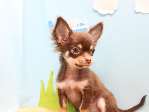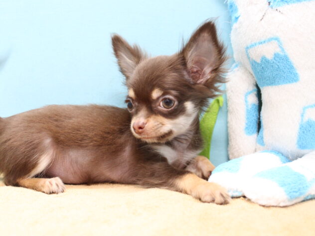 チワワ(ロング)の子犬詳細情報愛媛県/2025年9月8日生まれ/男の子/チョコレートタンホワイトの子犬