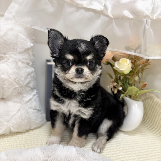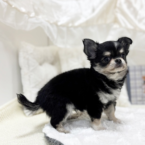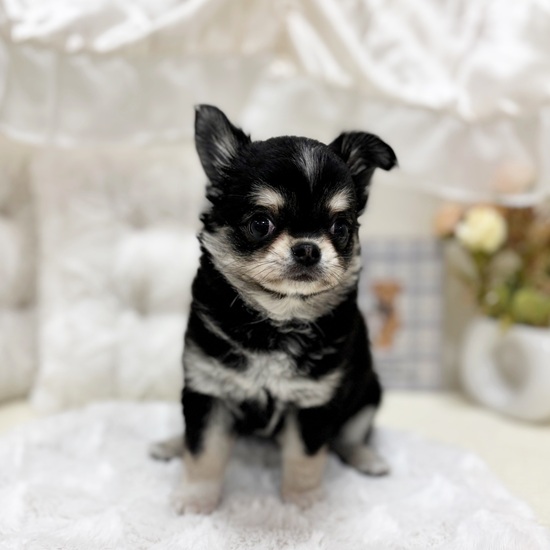 チワワ(ロング)の子犬詳細情報岐阜県/2025年9月19日生まれ/女の子/ブラッククリームホワイトの子犬