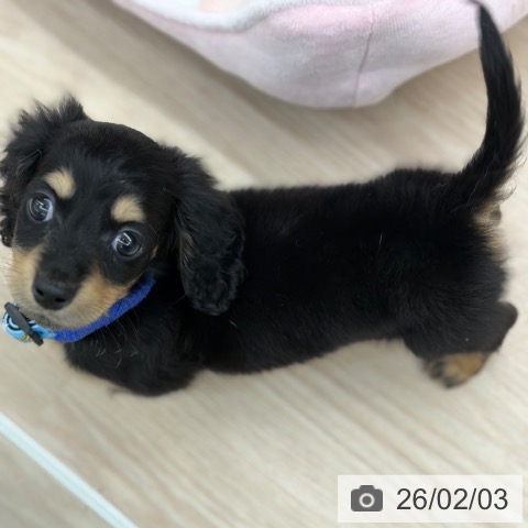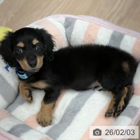 ミニチュアダックスフンド(ロング)の子犬詳細情報京都府/2025年12月1日生まれ/男の子/ブラックタンの子犬