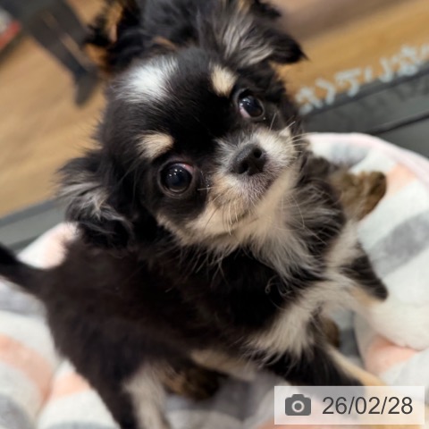 チワワ(ロング)の子犬詳細情報埼玉県/2025年12月24日生まれ/女の子/ブラッククリームホワイトの子犬
