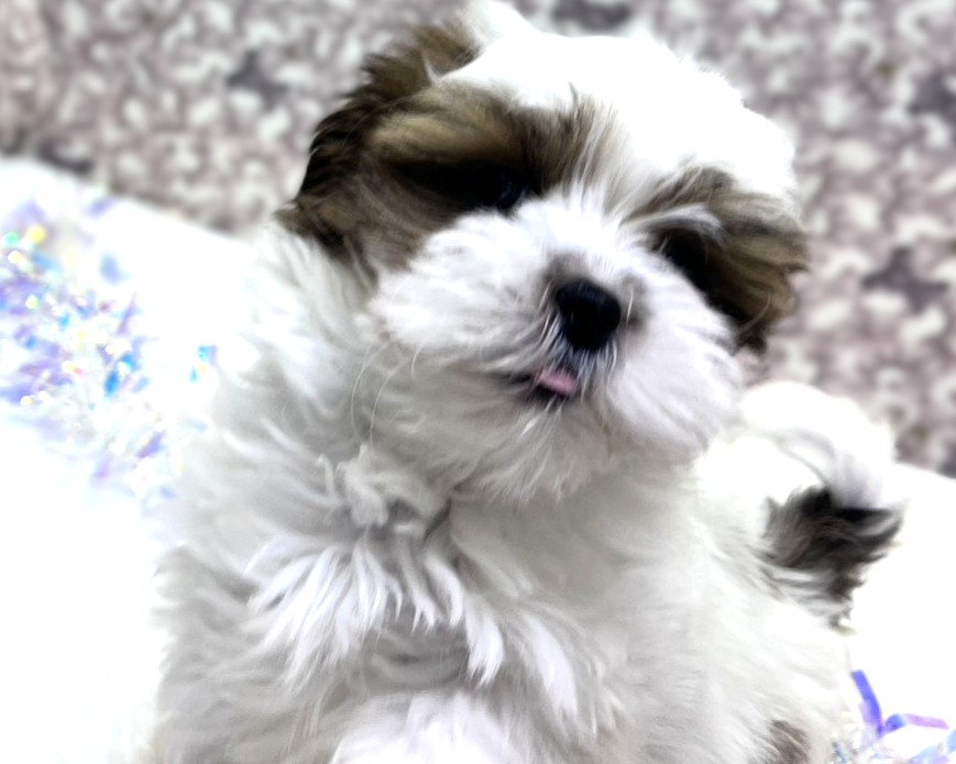 ゴールド&ホワイトの優しいカラーに、シーズーらしい愛嬌とマルチーズの上品さを兼ね備えた、思わず抱きしめたくなる可愛さ💕