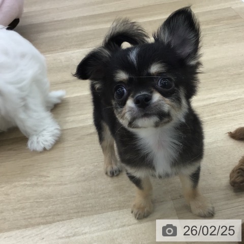 チワワ(ロング)の子犬詳細情報愛知県/2025年12月24日生まれ/男の子/ブラックタンホワイトの子犬