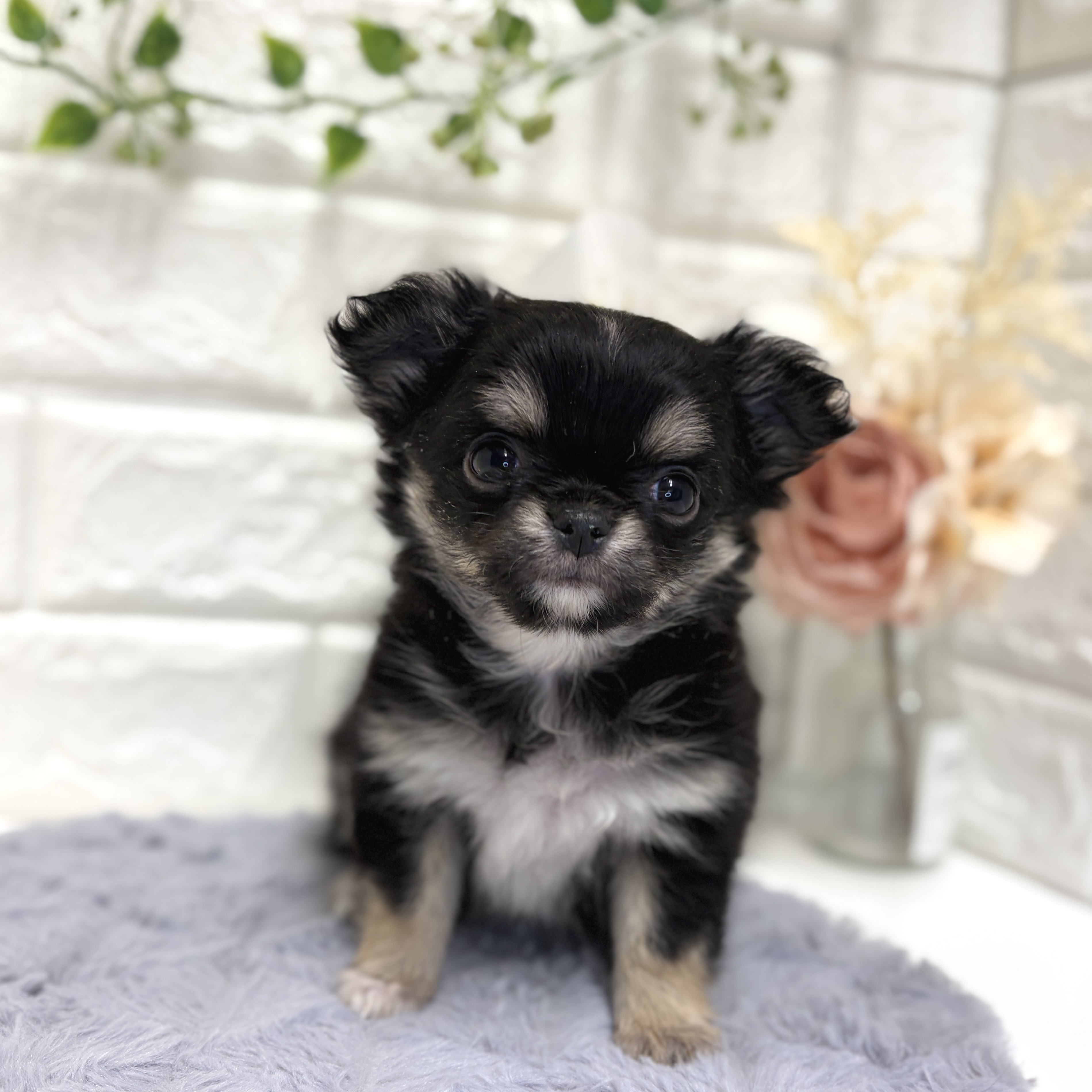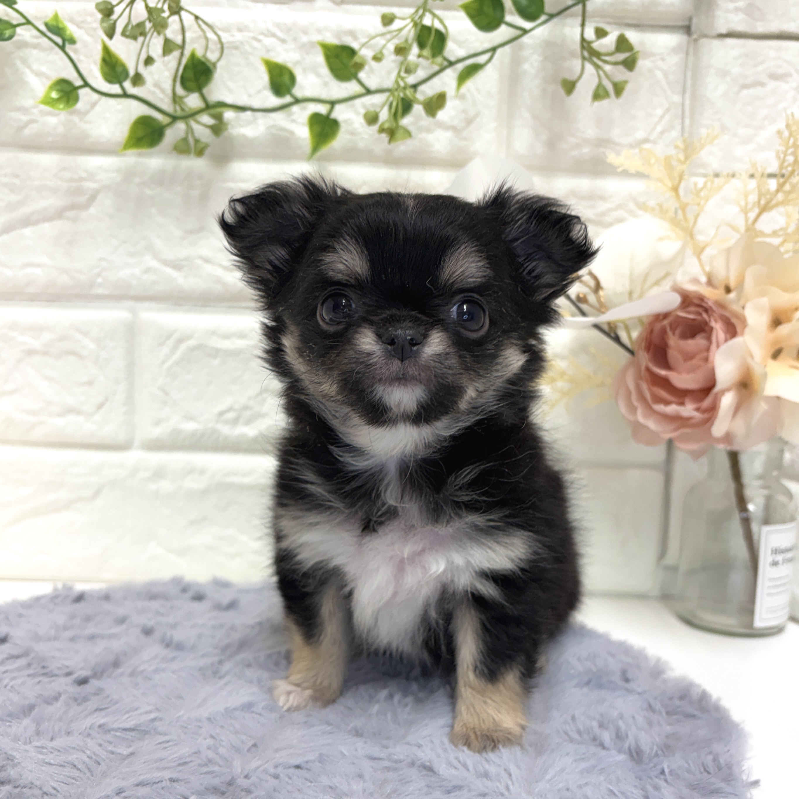 チワワ(ロング)の子犬詳細情報神奈川県/2025年12月21日生まれ/女の子/ブラックタンホワイトの子犬