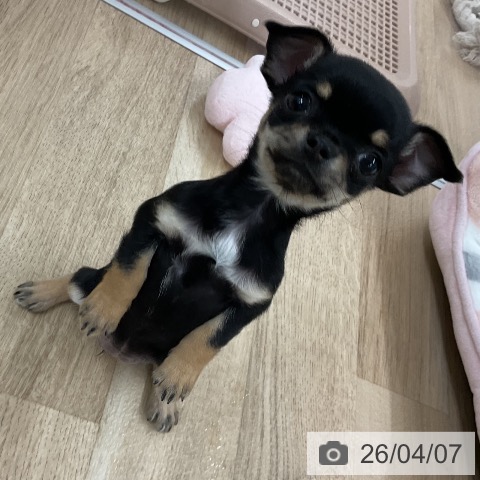 チワワ(ロング)の子犬詳細情報福岡県/2026年1月28日生まれ/女の子/ブラックタンホワイトの子犬