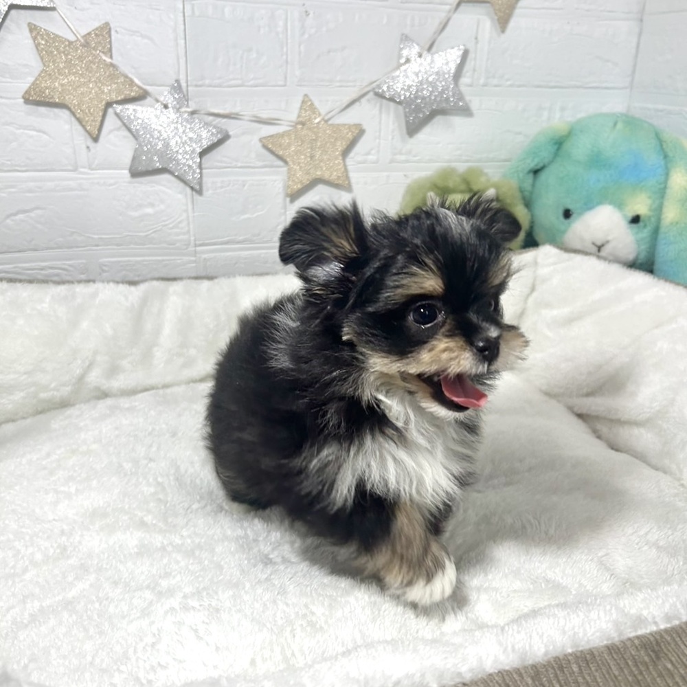 ポメマル/マルポメ(ポメラニアン×マルチーズ)の子犬詳細情報兵庫県/2025年12月13日生まれ/男の子/ブラックタンホワイトの子犬