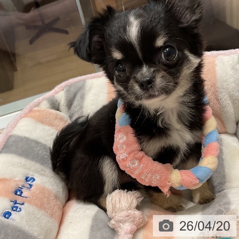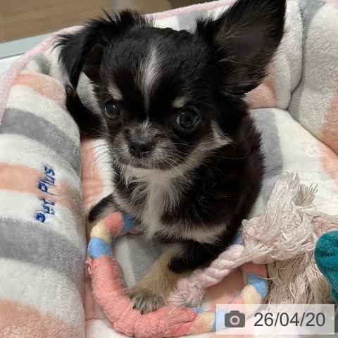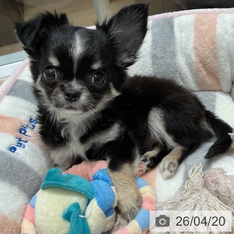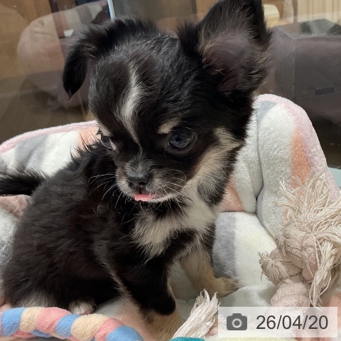 チワワ(ロング)の子犬詳細情報三重県/2026年2月10日生まれ/女の子/ブラッククリームホワイトの子犬